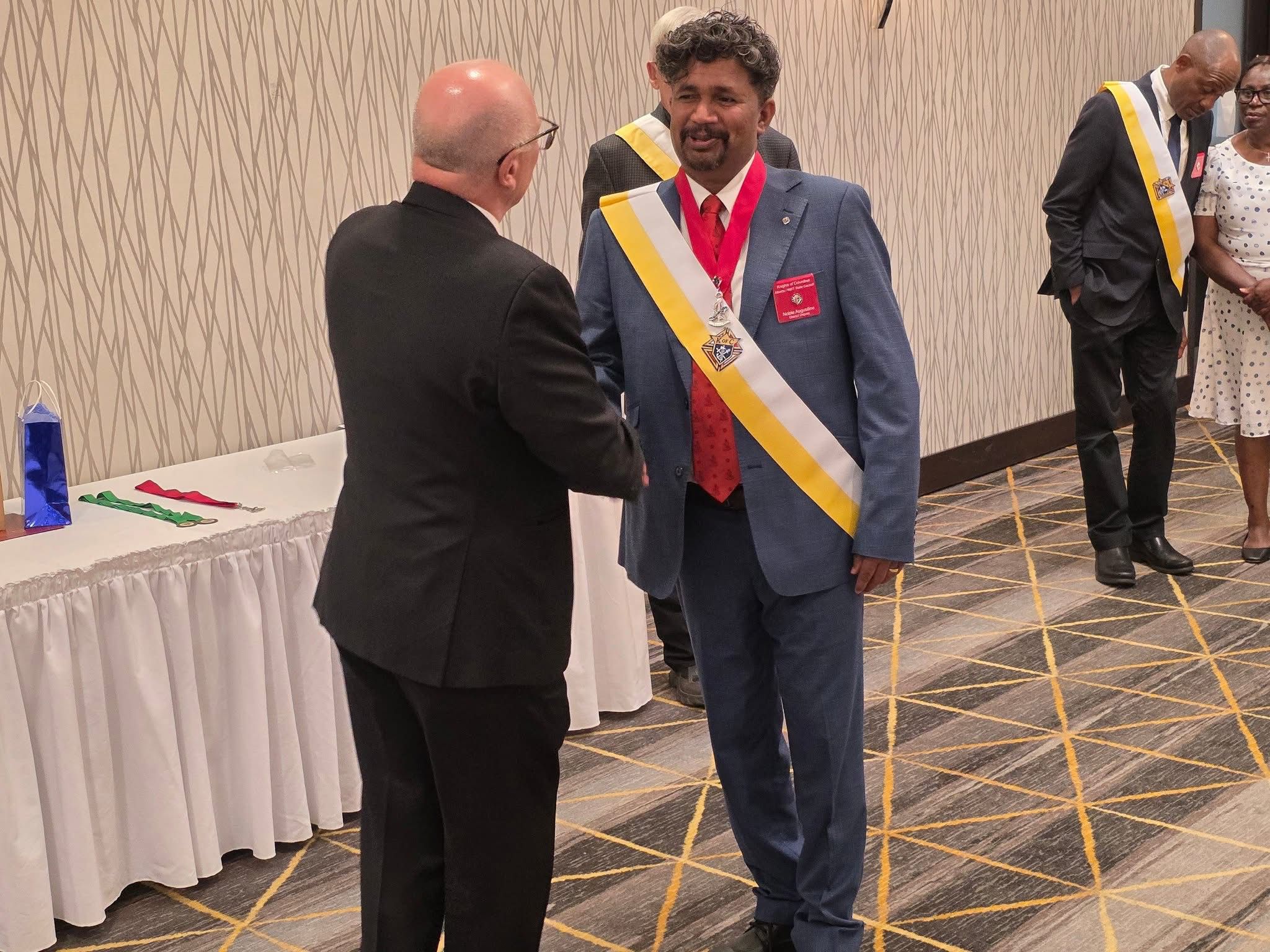 The training began on Friday, July 11, with team-building exercises and socializing. On Saturday, July 12, the agenda included an Opening Prayer, workshops on membership, insurance, and faith in action programs, and a Holy Mass at St. Mary’s Catholic Church. The participants also attended a banquet sponsored by the State Council, where new state board members and District Deputies for the 2025-2026 Columbian year were installed.
